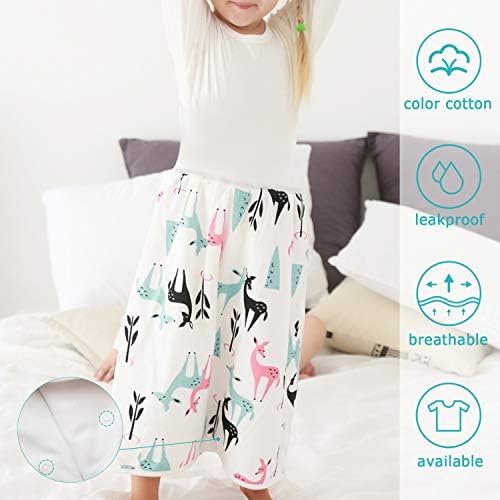 100% cotton material: Outer layer-cotton;Middle layer-100% TPU Waterproof fabric;Inner layer- 95% cotton,5% polyurethane(Nighttime Anti-Bedwetting children diaper skirt for girls which does not interfere with baby movements).