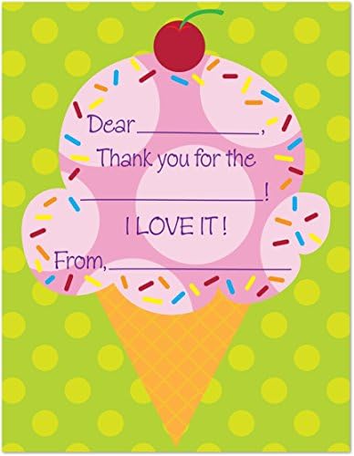 MyExpression.com ProductID: 19155 – This colorful kids fill-in thank you card features a cherry ice cream cone with sprinkles and a cherry on top. Fill-in the blank thank you cards provide a fast and easy way for your child to show their gratitude to friends and loved ones.
