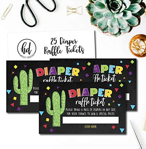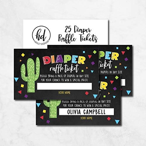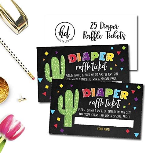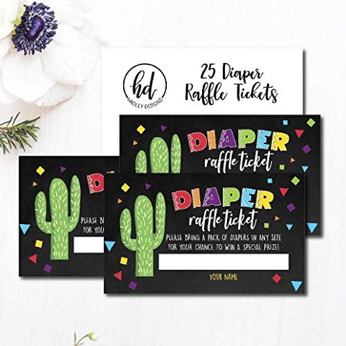 25 Fiesta Diaper Raffle Ticket Lottery Insert Cards For Girl or Boy Baby Shower Invitations, Spanish Mexican Supplies and Games For Neutral Gender Reveal Party, Bring a Pack of Diapers to Win Favors