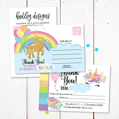 Best thank you cards for kids; The recipients of these elegant party favor cards are going to love getting a personal thank you note from your child or children with these exclusive one of a kind gender neutral kids fill the blank cards! The fill in the blank style makes it easy for your kids to write a personal message. Begin the cute fantasy unicorn horse bday party with the perfect bundle item accessories.