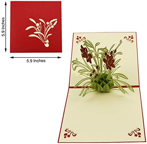 PACKAGE & DIMENSION: 3 pieces flower pop up cards with a plastic bag and envelops and available adhesive and two size are: 5.9*5.9Inches and one is 4.1*5.9Inches. In order to avoid damage during transportation we have arranged one cardboard for fixing.