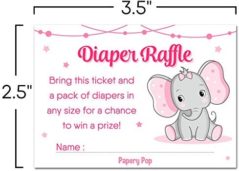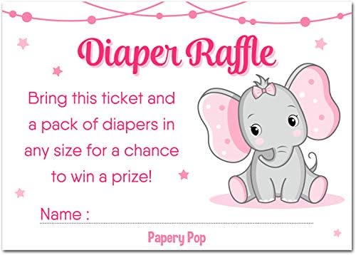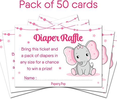 50 Diaper Raffle Tickets for Baby Shower Girl (50 Pack) – Elephant – Baby Shower Invitations Inserts Request Cards Supplies