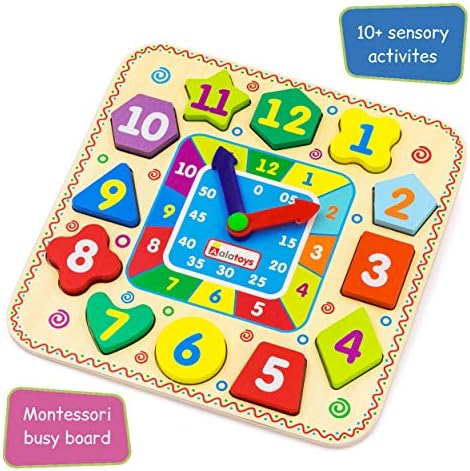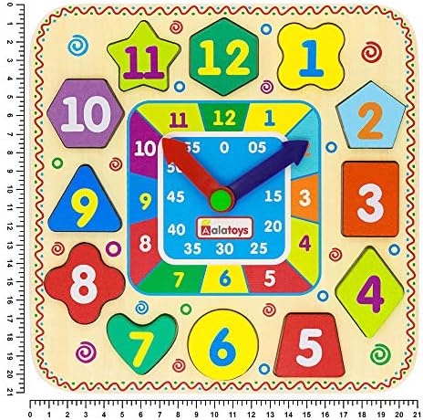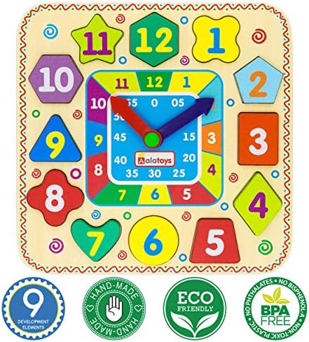 SAFE MATERIAL:Made to last from natural, sustainable solid woodand water-based colours, all the pieces in this shape clock set are non-toxic and it has smooth edges.