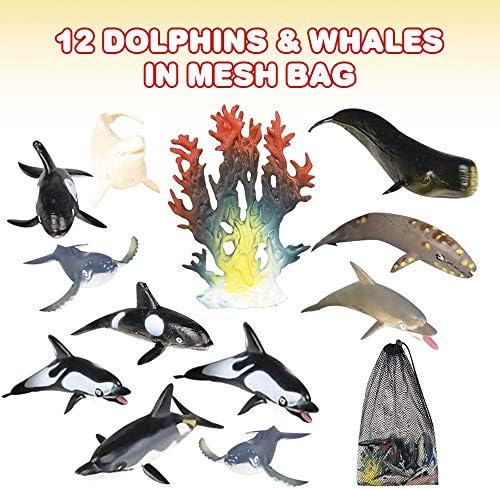 PACKED WITH VARIETY: Every pack comes with 12 different sea creatures measuring 3 inches. The figurines are meticulously painted and highly detailed for a realistic appearance. Teach and enthrall the kiddos with this dolphin and whale toys set!