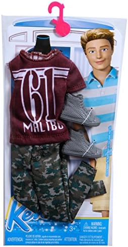 *Name subject to change. Ken can put an outfit together for any occasion with casual ease and cool style. This dashing look is part of a clothing line and includes a trendy top, bold bottom and sleek shoes. Choose a casual look or get extra fancy — looking handsome in whatever he wears, he’ll put a smile on Barbie doll’s face. Girls will love dressing up Ken doll (sold separately) for whatever engagements they can dream up! Collect them all to mix and match for the ultimate storytelling fun. Includes one top, one bottom and one pair of shoes (each sold separately); doll not included. Fashions fit most Ken dolls.
