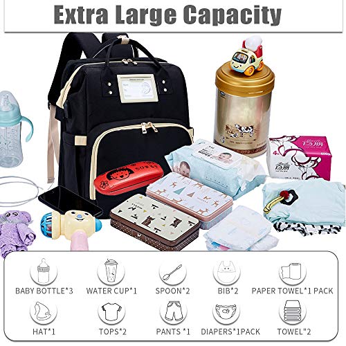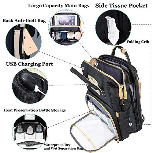 👶【Auto Foldable Crib & Waterproof】Mummy baby diaper bag backpack is made of Waterproof 600D Fabric Oxford, and is machine-washable. Diaper bag is equipped with a portable and foldable crib, and is attached with a soft changing mat, Removable sun blinds can block strong sunlight and fallen leaves. Giving your baby a safe, clean, and comfortable sleep nest.