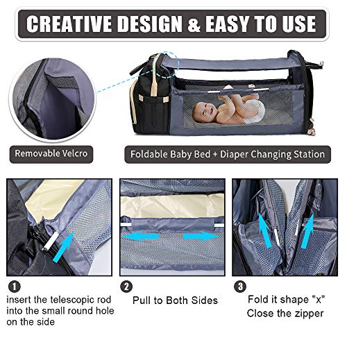 👶【Meet All the Needs for You Baby】Whether you are going for a weekend trip or a seaside holiday during the day, Multifunctional diaper bag combines can quickly and easily meets the changing needs of babies’ sleep, feeding and play time. So you can easily enjoy your trip.