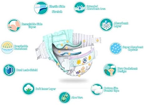 DUAL LEAK-SHIELD DIAPER: Layer of absorbency pull liquid away and keep your baby dry & while preventing leakage with its barriers.