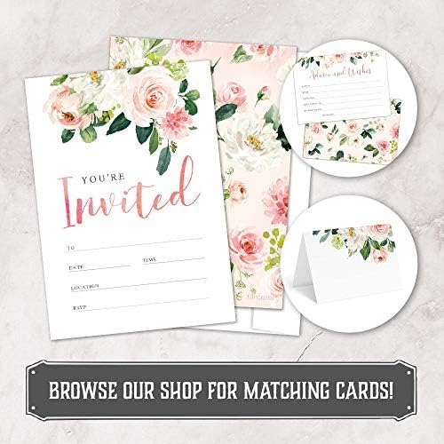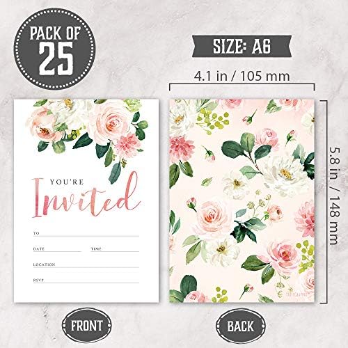 HIGH-QUALITY CARD STOCK. These fill-in style floral invitation cards are as thick as postcards. Each 4.1” x 5.8” invitation card features designated spaces to fill in personalized event details and a matte finish that prevents ink smearing.