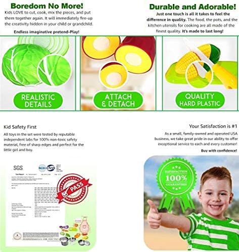 REALISTIC CUTTING PLAY FOOD – The 20 pieces of Play Cutting Food, Vegetables, and Fruits are designed to look realistic – with larger sizes and more vibrant colors. These Food Slices produce a fun crunchy sound when being cut. Thus, kids tend to engage more in this activity while also enhancing their fine motor and other life skills.