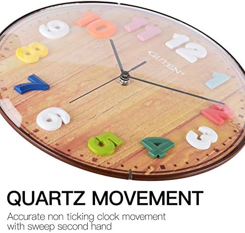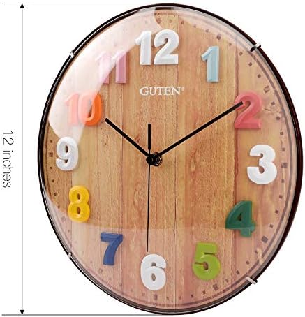 GUTEN 12 Inch Wall Clock-Silent Kids Wall Clock