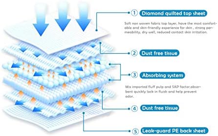 ✔ Super Absorbing System: Mix imported fluff pulp and SAP factor,absorbent quickly lock in fluids and help prevent odor. Keeping liquid away from skin to promote sound sleep and peace of mind for children or Pet.