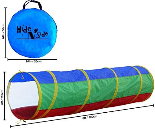 Hide-n-Side Tunnels are fun and exciting! These vibrantly-colored, friendly-faced play tunnels for kids make a lovely, bright and inviting place for kids to play. Also the perfect place to practice crawling, sensory processing and coordination activities. Children love to explore, play pretend inside and even to use them as a cozy refuge from the light, noise and hustle of a busy home or classroom. It’s a perfect idea for a little kids birthday present, or Christmas gift. Our tunnels are amply-sized so that even larger children can fit in comfortably, and they store compactly and conveniently in the accompanying bag. They are suitable for even small homes and apartments or Daycares. These children tunnels are the PERFECT birthday gift for 3,4,5,6 year old boys and girls! Exactly what every grandson or granddaughter would love to get from their Grandma and Grandpa! Collapses for easy storage with securing easy and convenient twist locks. Made from polyester with a wrapped steel spring frame sewn safely and securely into a fabric sleeve. These crawling tunnels are designed for years of play! Enjoy!:)