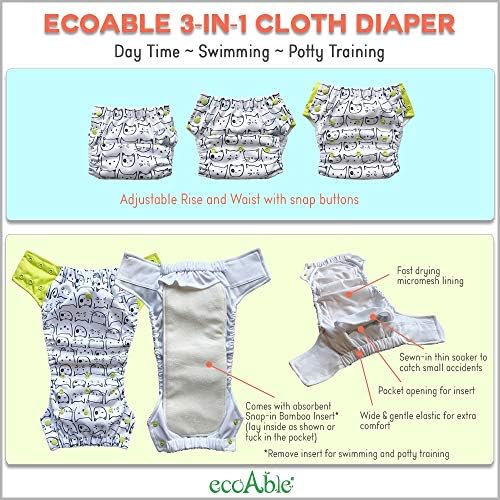 HYBRID CLOTH DIAPER: Waterproof 3-in-1 trainer for daytime, swimming or potty training