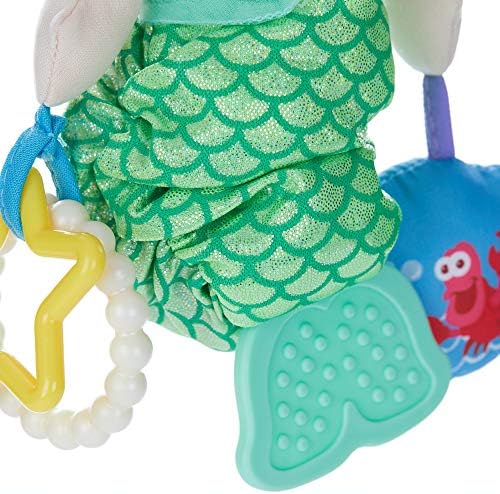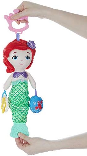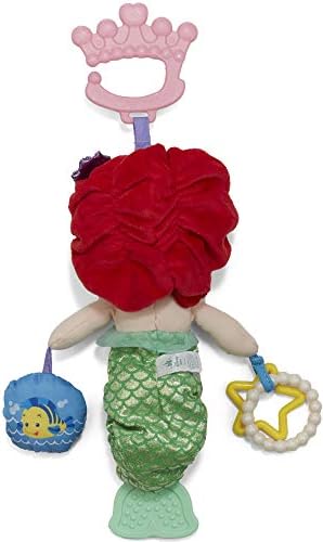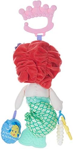 Kids Preferred is happy to bring the nostalgia of the Disney Classic “The Little Mermaid” story to a developmental toy that baby will quickly love. This 14 inch Ariel developmental activity toy includes fun interactive features, bright vibrant colors, and under the sea accents to entertain your little one. Complete with a pink crown shaped clip top for attaching to strollers and car seats for safe keeping on-the-go. A Sebastian and Flounder squeaking pillow attachment. And baby-safe teether pearl ring and star attachments are just right for baby to chew on with different textures to soothe and relieve stress on developing infant gums and teeth. Pull the tail of this mermaid and watch is it zips back up for more ways of interactive play! The many different textures and features will entertain baby while aiding in the development of senses and fine motor skills with this must have on-the-go toy.