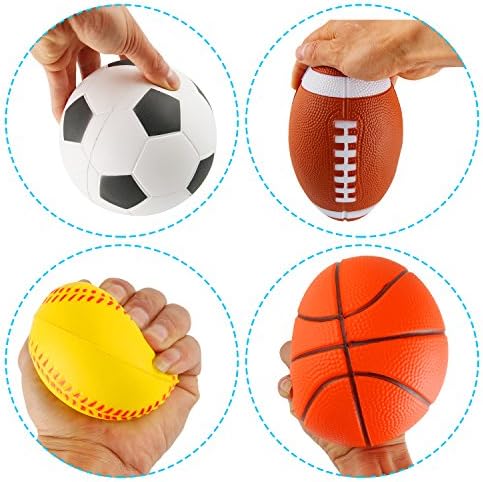 Set of 4 foam sports balls. This set contains a baseball, basketball, football, and soccer and they each look like the real deal! Foam sports balls are soft and make it easy to throw and catch. Relax-able sports balls are great for kids learning to catch, and great to squeeze to melt away some stress. These soft foam balls also eliminate the fear of being hit while kids successfully learn skills in each sport. Soft PU balls have a durable outer skin that is also moisture resistant. Great for restricted areas indoors or out. These are fun gifts for coaches, athletes and sports fans!