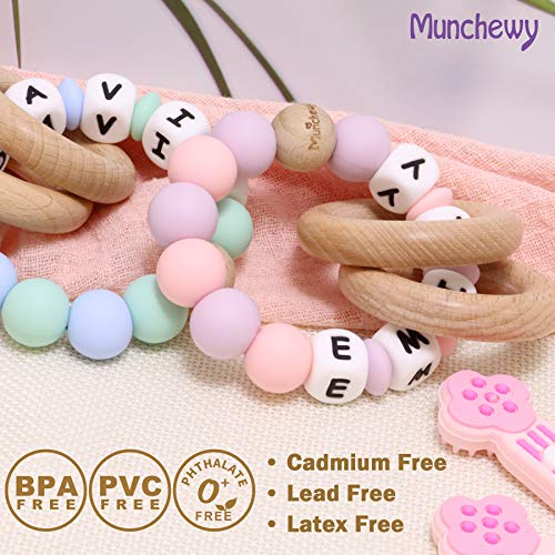 Munchewy original baby rattle teether, colorful big chewable beads and Double thread string beads, more firm, more resistant to biting, wearable and perfect size for babies and toddlers, It comes with exquisite brand packaging, best gifts for your children.
