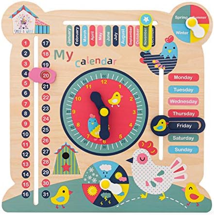 Be the first to review “SMILE A WHILE Montessori Wooden Toys Kids Calendar Teaching Clock for Kids Learning to Tell time Great for Circle time Learning Center All About Today Board Weather and Days of The Week for Kids”