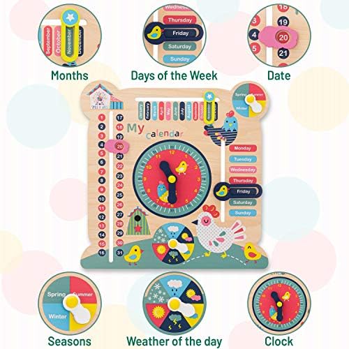 SMILE A WHILE Montessori Wooden Toys Kids Calendar Teaching Clock for Kids Learning to Tell time Great for Circle time Learning Center All About Today Board Weather and Days of The Week for Kids