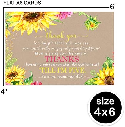 25 Thank You Cards from Baby – 25 flat thank you cards – 25 envelopes (A6 size, perfect for mailing). Printed on thick 120lb card stock paper with full-color design – Standard 4×6 cards printed with message from baby on front and plenty of room to personalize of back of card.