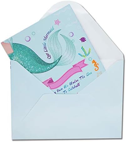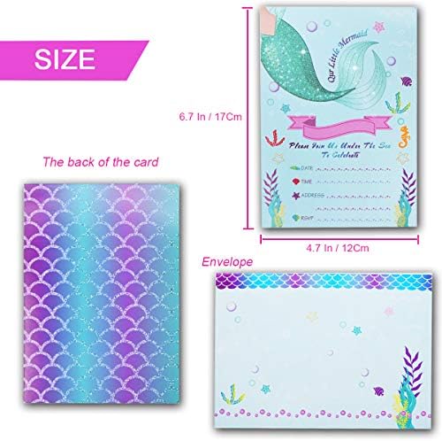 Package- These invitations are a perfect addition to your kids’ birthday, baby shower or mermaid themed party. Each order includes 24 Mermaid Party Invitations and 24 Envelopes.