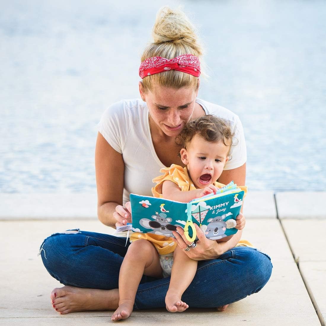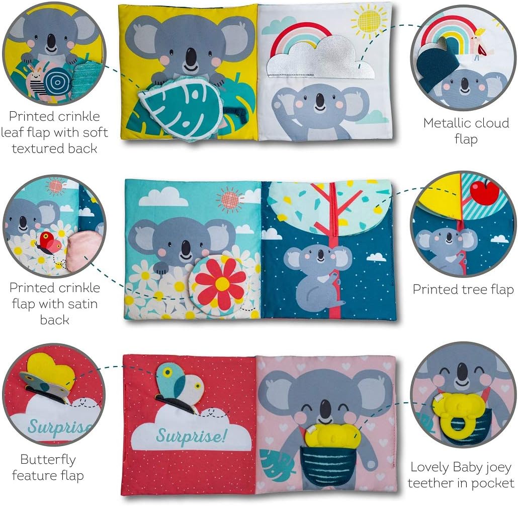 Taf Toys Where is Joey Book, Peek-a-boo Lift the Flap Interactive Soft Baby Book, Early Education Crinkle Activity Book with Textures and Baby Safe Mirror, On-The-Go Parent and Baby’s Travel Companion