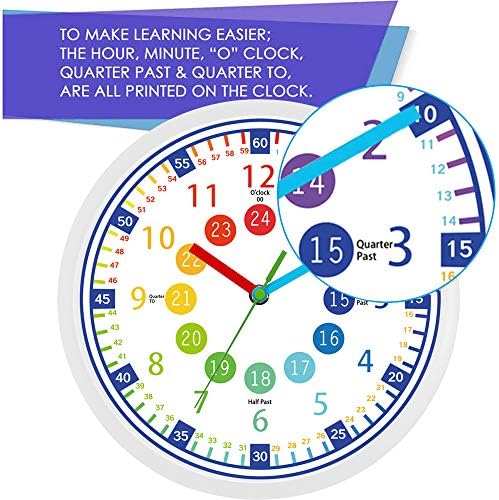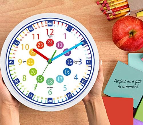 ๐ CLEARLY MARKED, COLORFUL AND EASY TO READ! Our math clock also comes with a free ebook all about teaching kids how to tell the time faster and easier. Size: 12 inch. Great guide for parents and teachers