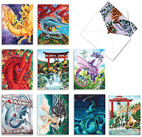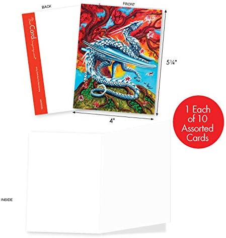 SIZE – These 4 x 5.12 inch all-occasion cards features the elegance and power that comes with the mythological dragon. Admired by kids and adults alike, the colorful artwork highlights the majestic animal.