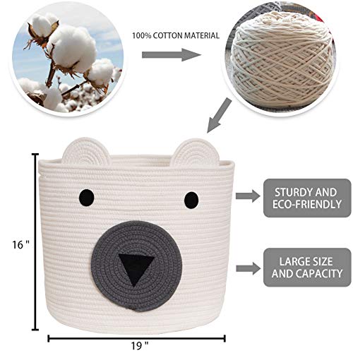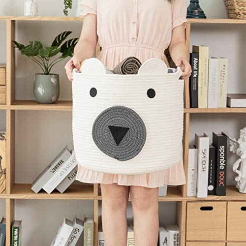 🎅 UNIQUE CARTOON BEAR DESIGN:Cute bear face design with excellent workmanship, makes the woven storage basket adds sweet flair to your home.Neutral color and cute bear face design of the pet basket is delicate and lovely, which can be a good decoration of your space