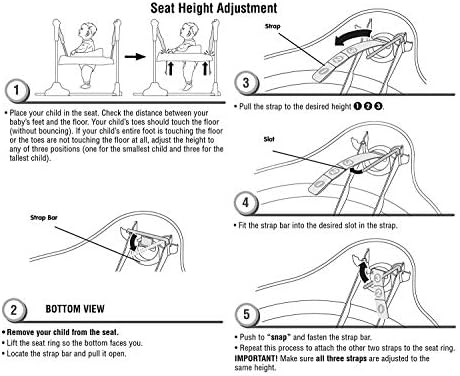 The Rainforest Jumperoo is a safe and comfortable place for baby to sit and play, whether he stays for just a moment or for several minutes. Two soft leaves extend from the frame to create an overhead canopy with soft toys that dangle down for fun bat-at play. It also features a rotating seat with soft spring covers that keep little fingers safe from pinching, and three-position height adjustment for a custom fit.
