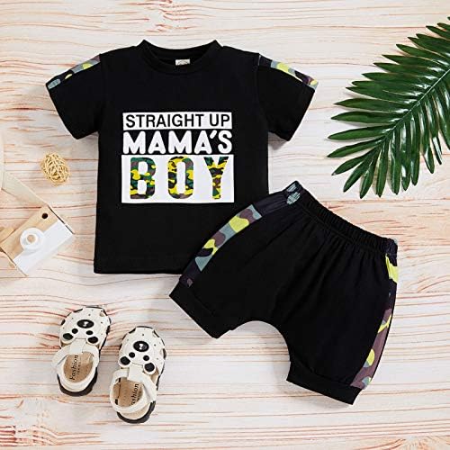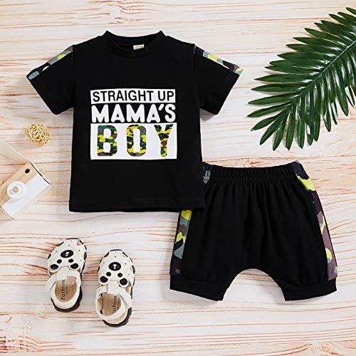 ZOELNIC Baby Boys Summer Clothes Straight Up Mama’s Boy T-Shirt+Camo Shorts 2Pcs Casual Outfits
