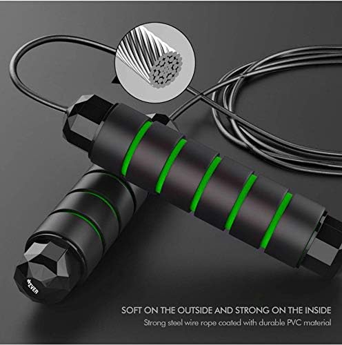 ✔ HEAVY-DUTY and HIGH QUALITY: Zver jump rope made of thick braided steel wire rope which is coated with PVC. Extremely durable and smooth, ensures the maximum service life and avoids cracking or breaking. Your two handles are wrapped in soft memory foam on the surface to keep your hands comfortable and from getting stiff after a long workout.